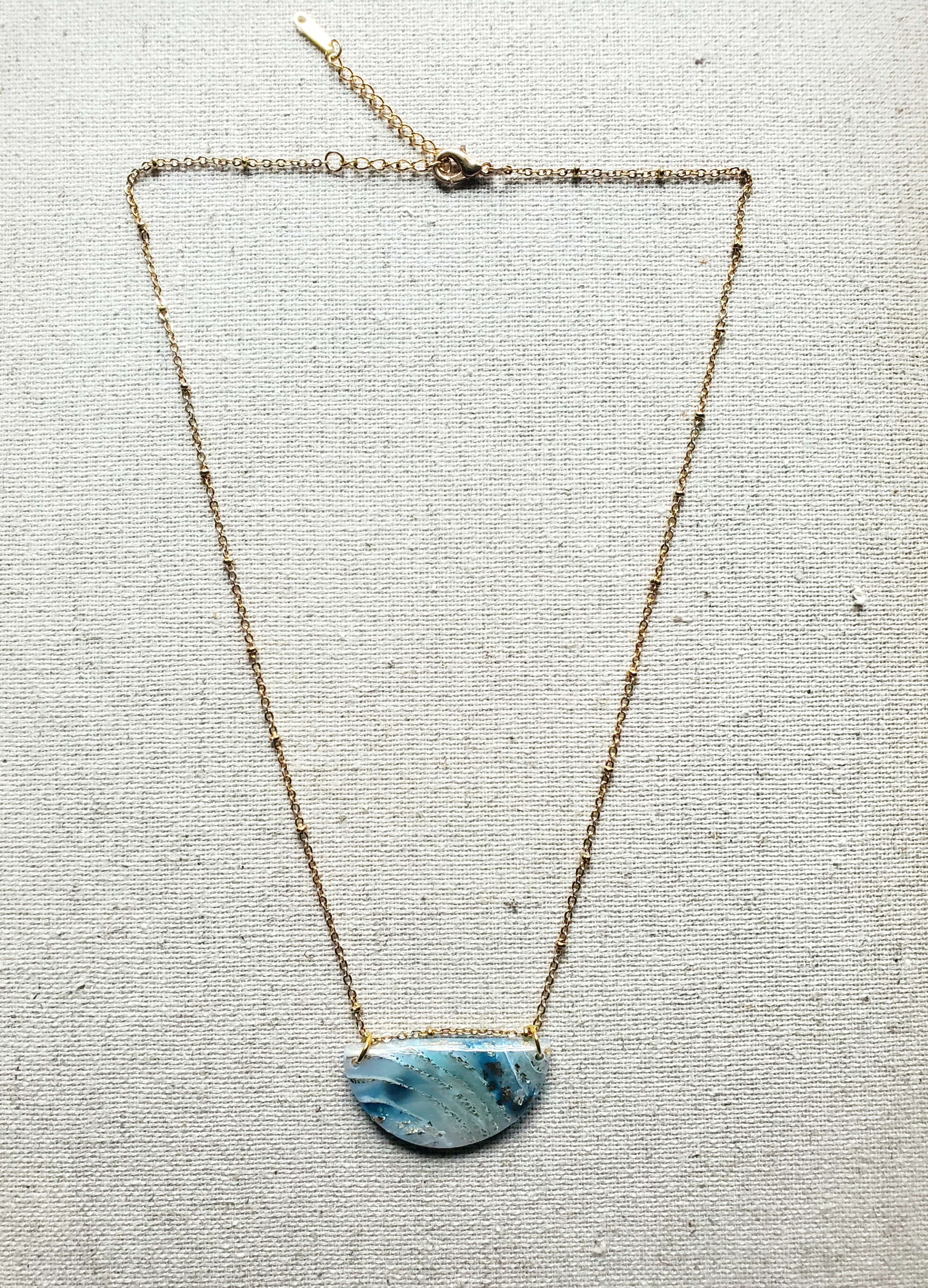 Whether worn as a statement piece or layered with other accessories, our Agate Inspired Pendant Necklace is sure to turn heads and spark conversation wherever you go. Embrace the beauty of nature with this stunning adornment that effortlessly combines modern sophistication with timeless charm.