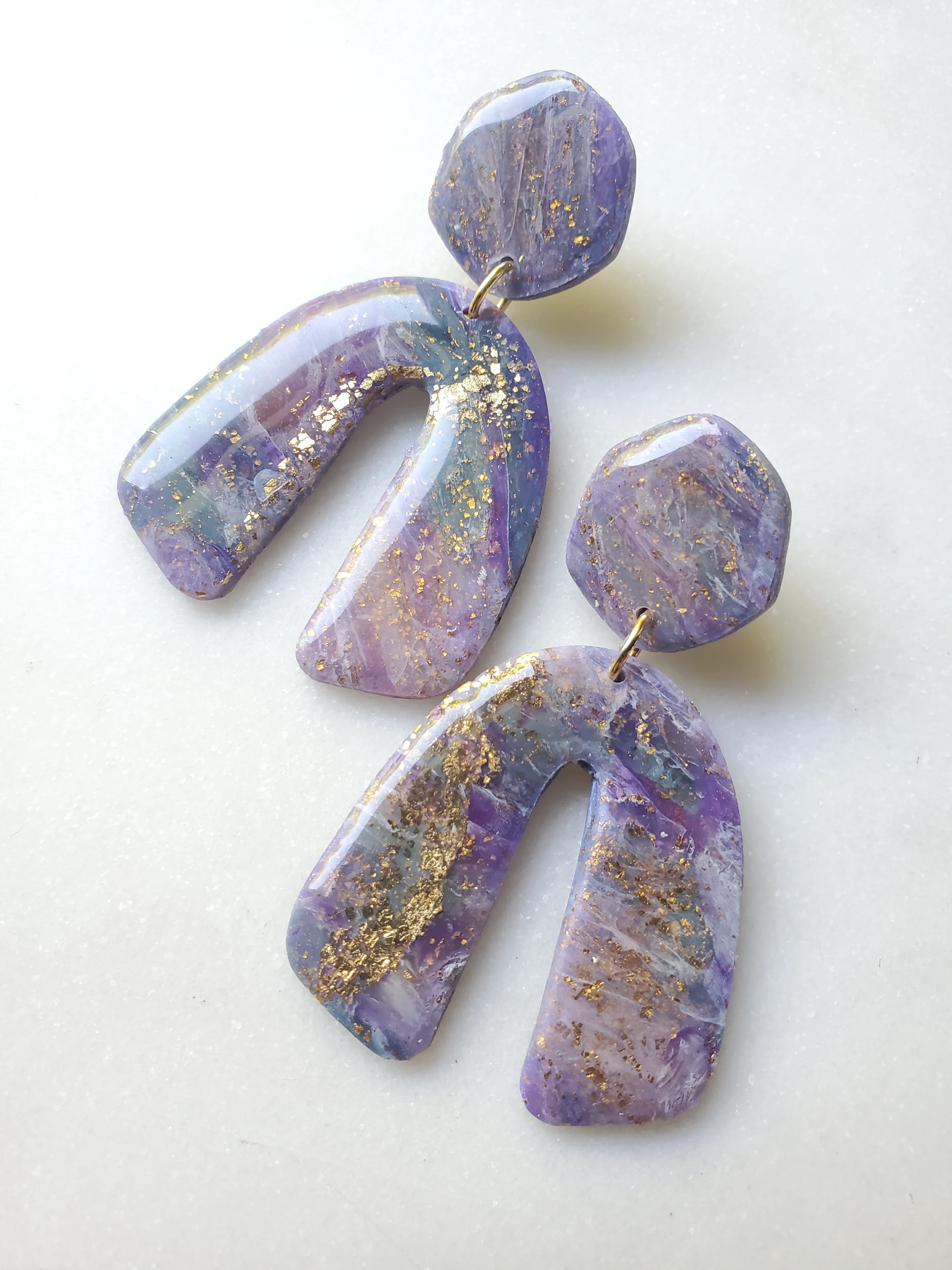 Put a bold spin on your look with these unique statement earrings, crafted from clay + love to create a beautiful agate inspired look. Featuring stunning arches, their vivid and vibrant designs will set you apart from the crowd. These bold and captivating earrings will be the perfect accessory for any stylish and sophisticated wardrobe. They'll make a statement wherever you go! Each pair varies in design and color.