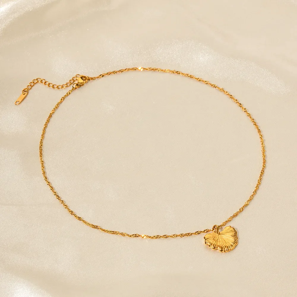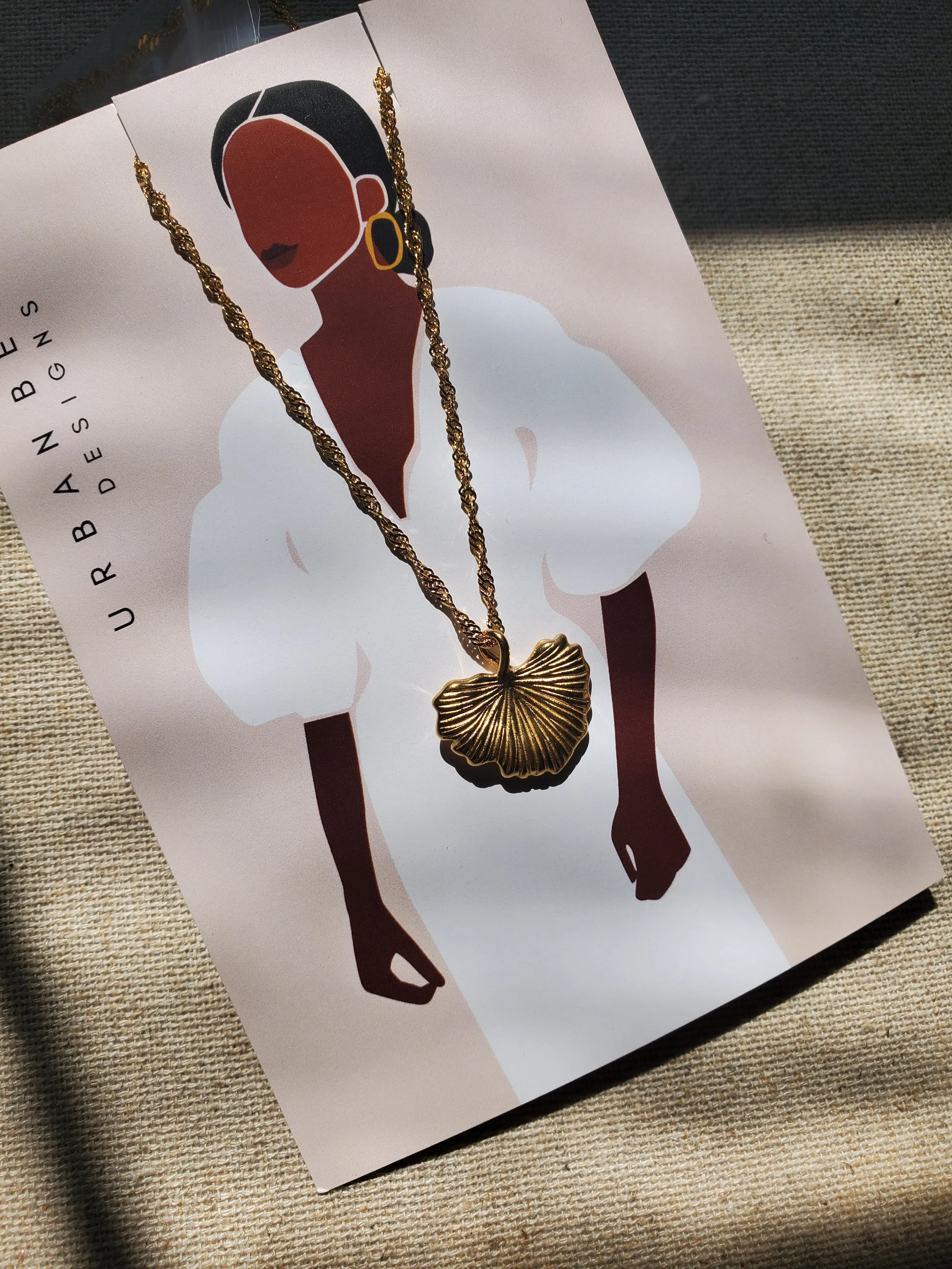 Featuring a delicate gold chain and an ornate gingko charm, this necklace effortlessly adds a touch of elegance to any outfit. Perfect for those who appreciate timeless beauty and want to make a subtle statement, it's a must-have accessory for any modern-day fashionista.