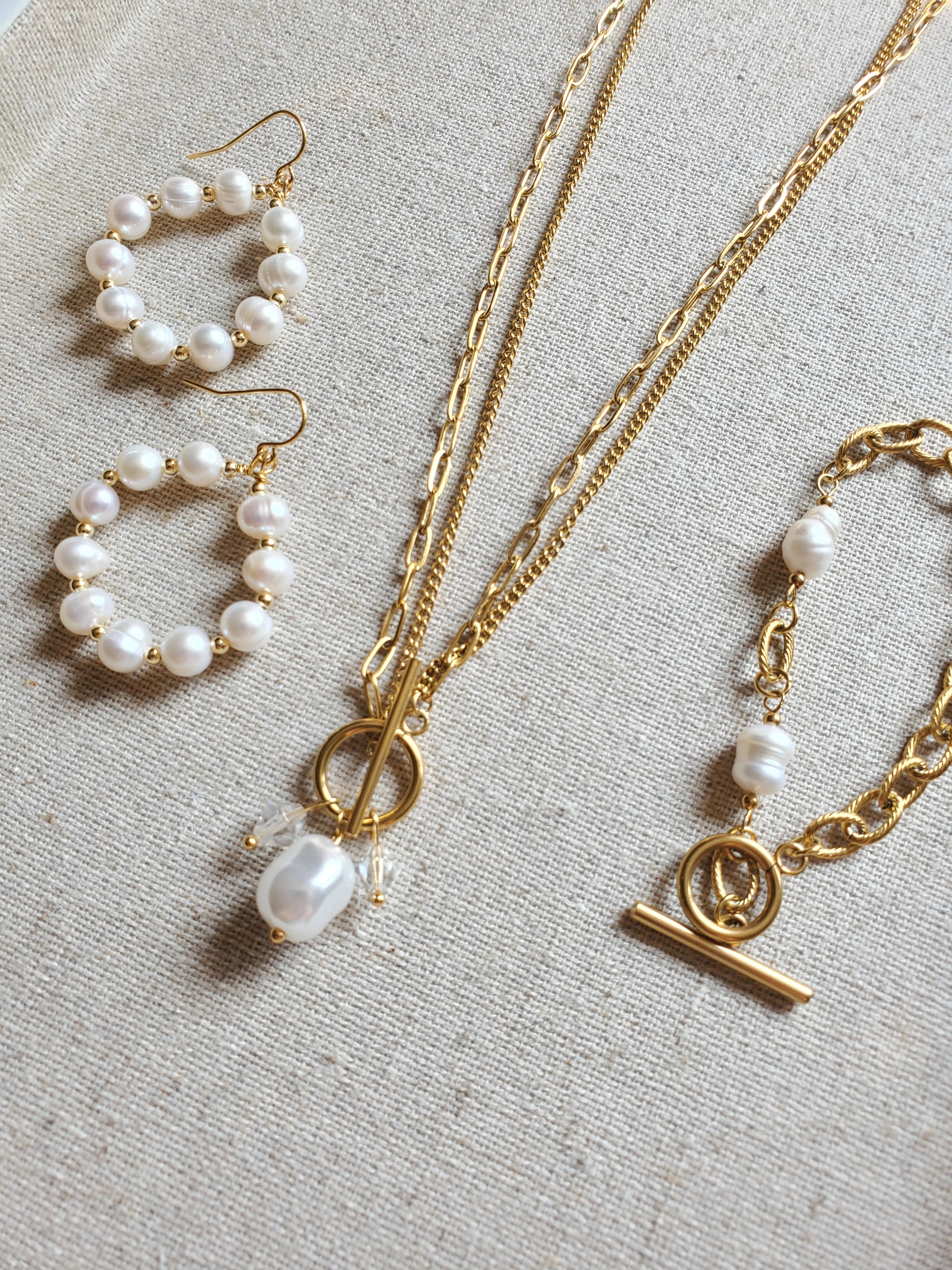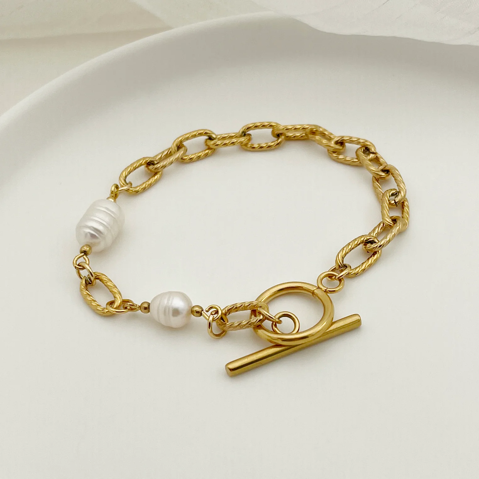 Discover our sophisticated Pearl Toggle Bracelet — a modern interpretation of classic elegance. The stylized toggle clasp adds a contemporary touch, completing the look with a modern flair. Wear this exquisite piece and exude an air of sophisticated beauty, whether you're dressing up for a special occasion or elevating your everyday ensemble.