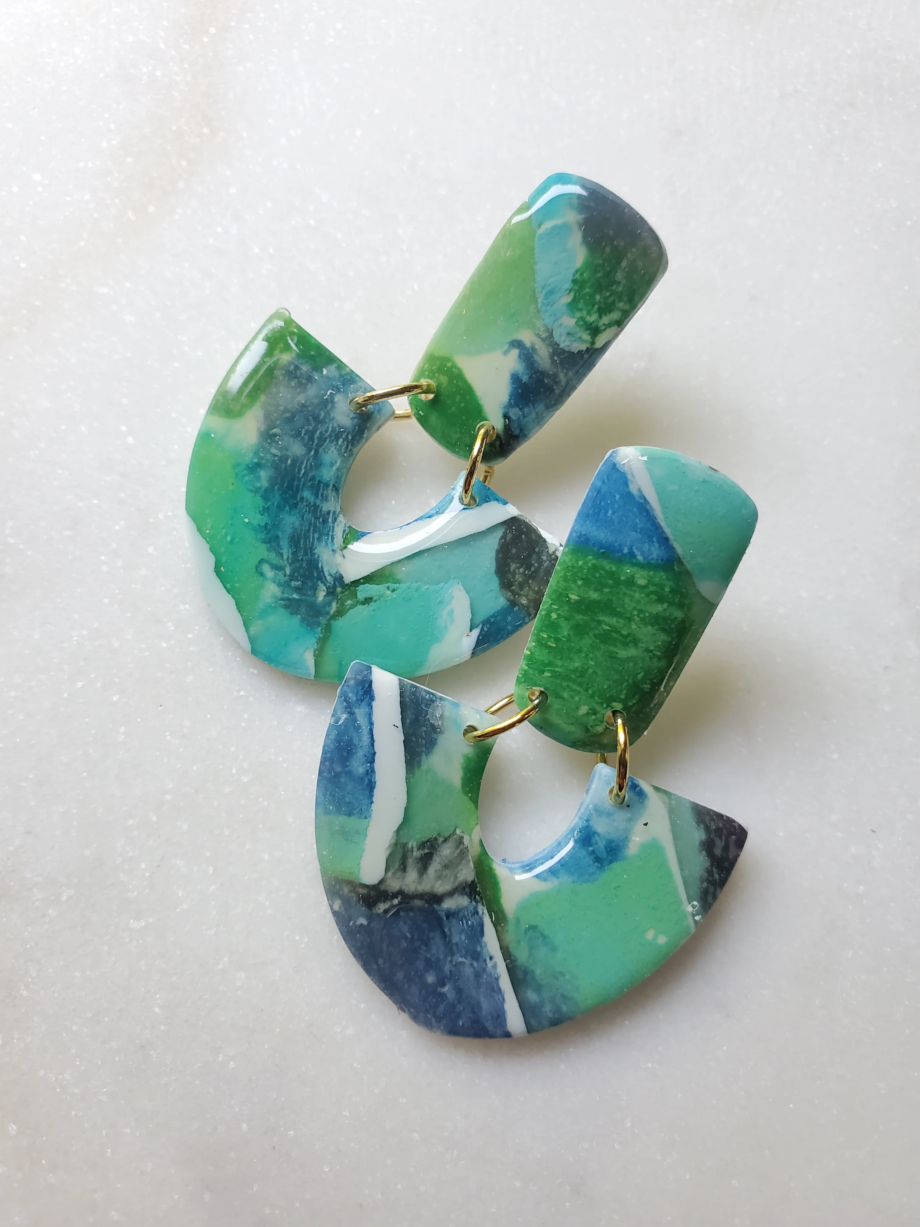 Go full style risk-taker and spice up any ensemble with these abstract statement earrings. With a unique silhouette - they are the perfect way to express your modern, adventurous style and make a statement, wherever your journey takes you. This specific collection was hand-painted to create an abstract design.