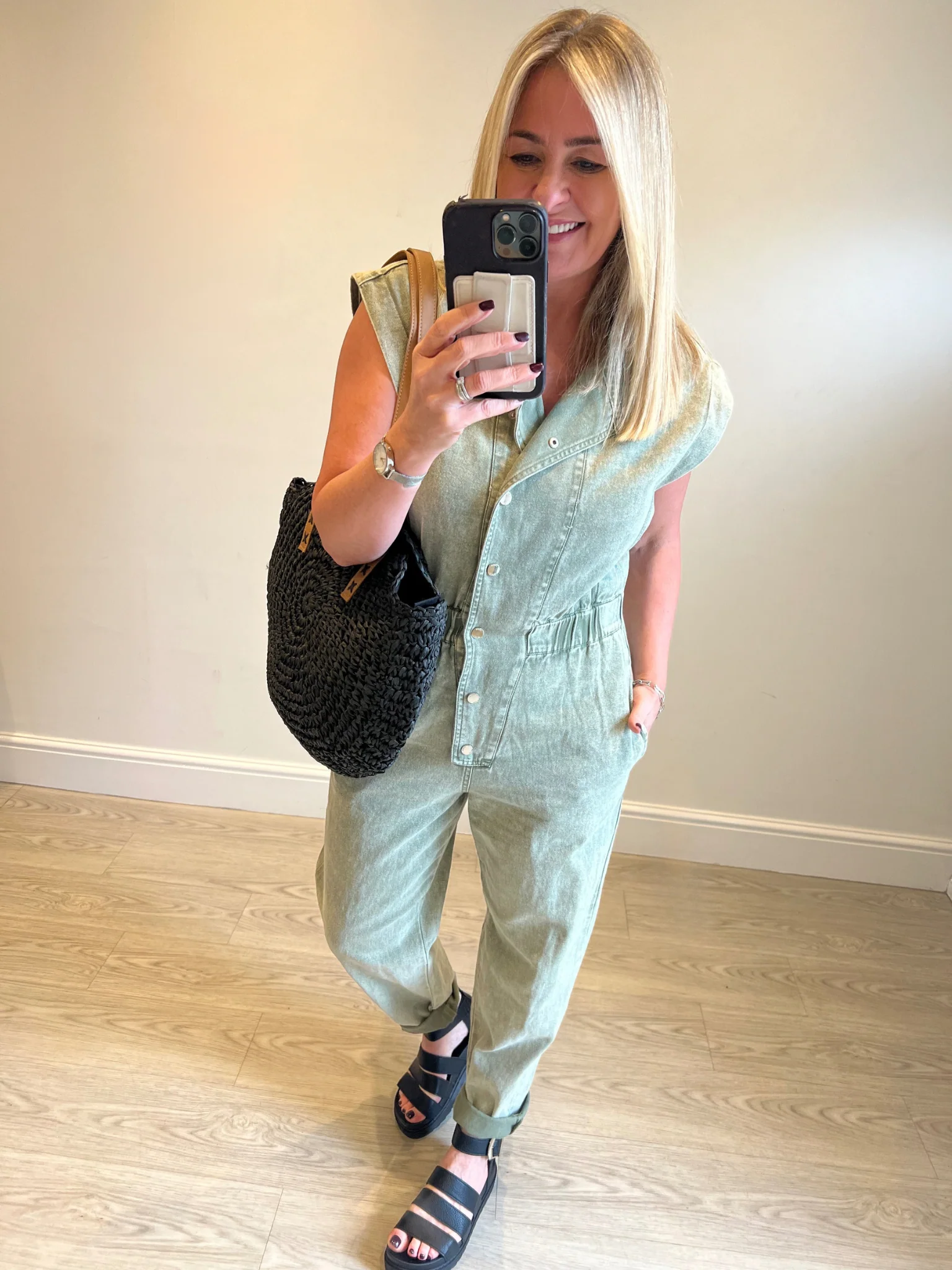Cute, casual, and oh-so-comfy, our Button Front Jumpsuit is a must-have for any wardrobe. This sleeveless jumpsuit features a stud button fastening, allowing for easy on and off while the elasticated waistband cinches in your waist for a flattering silhouette. Oh, and did we mention it has convenient side pockets? Trust us, you won't want to take this one off!