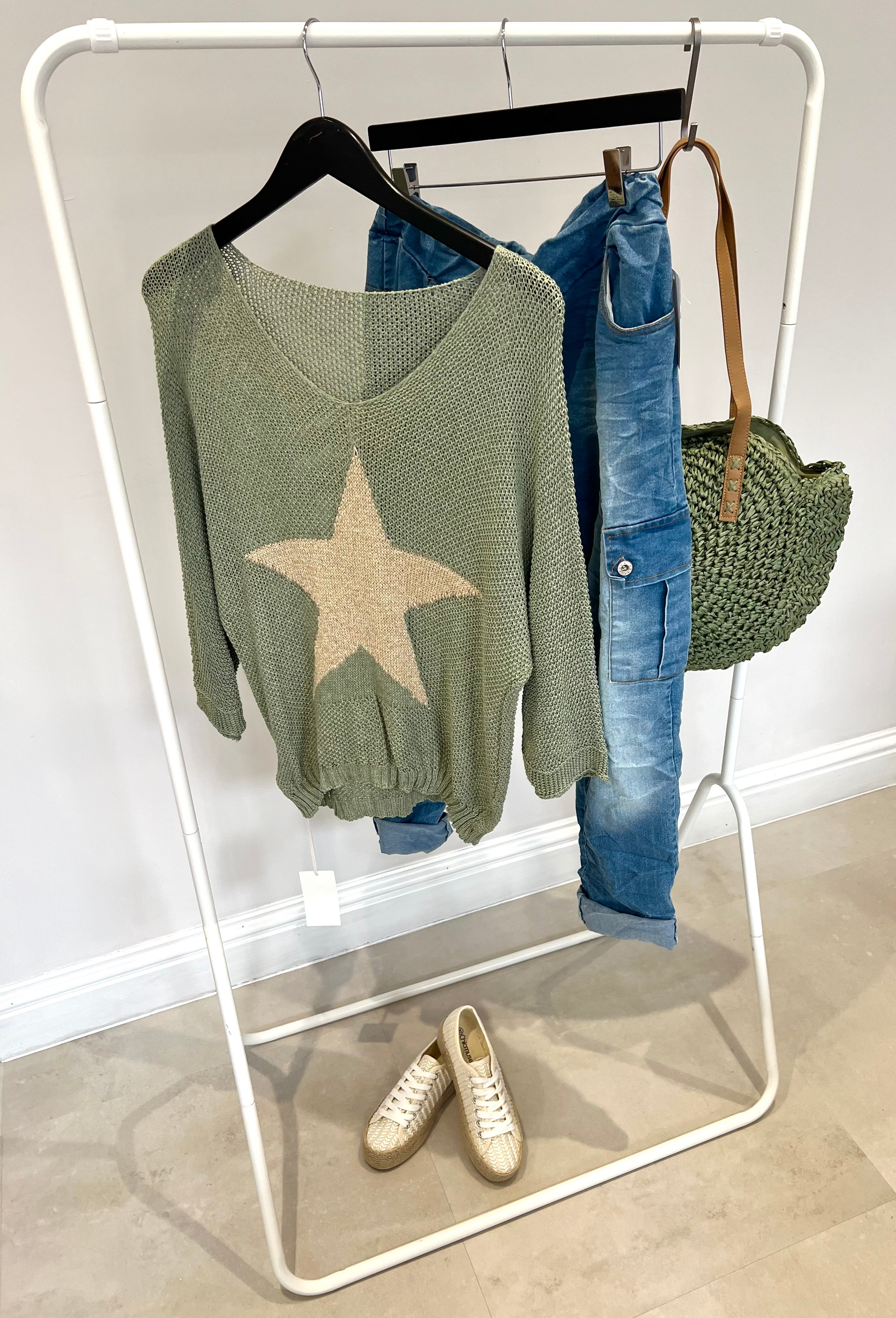 Get ready to shine this summer with our Lurex Star Jumper. Made from a fine knit fabric, this v-neck jumper features a sparkling lurex star on the front. Perfect for adding a touch of glamour to your summer wardrobe!