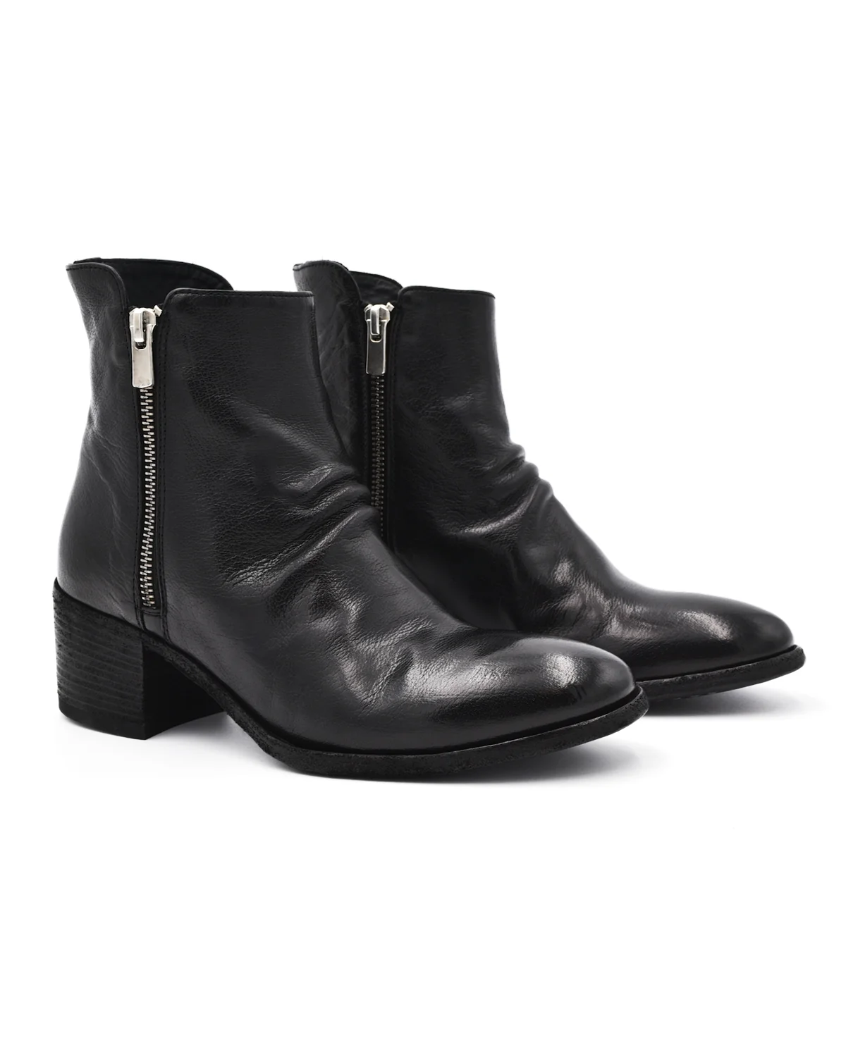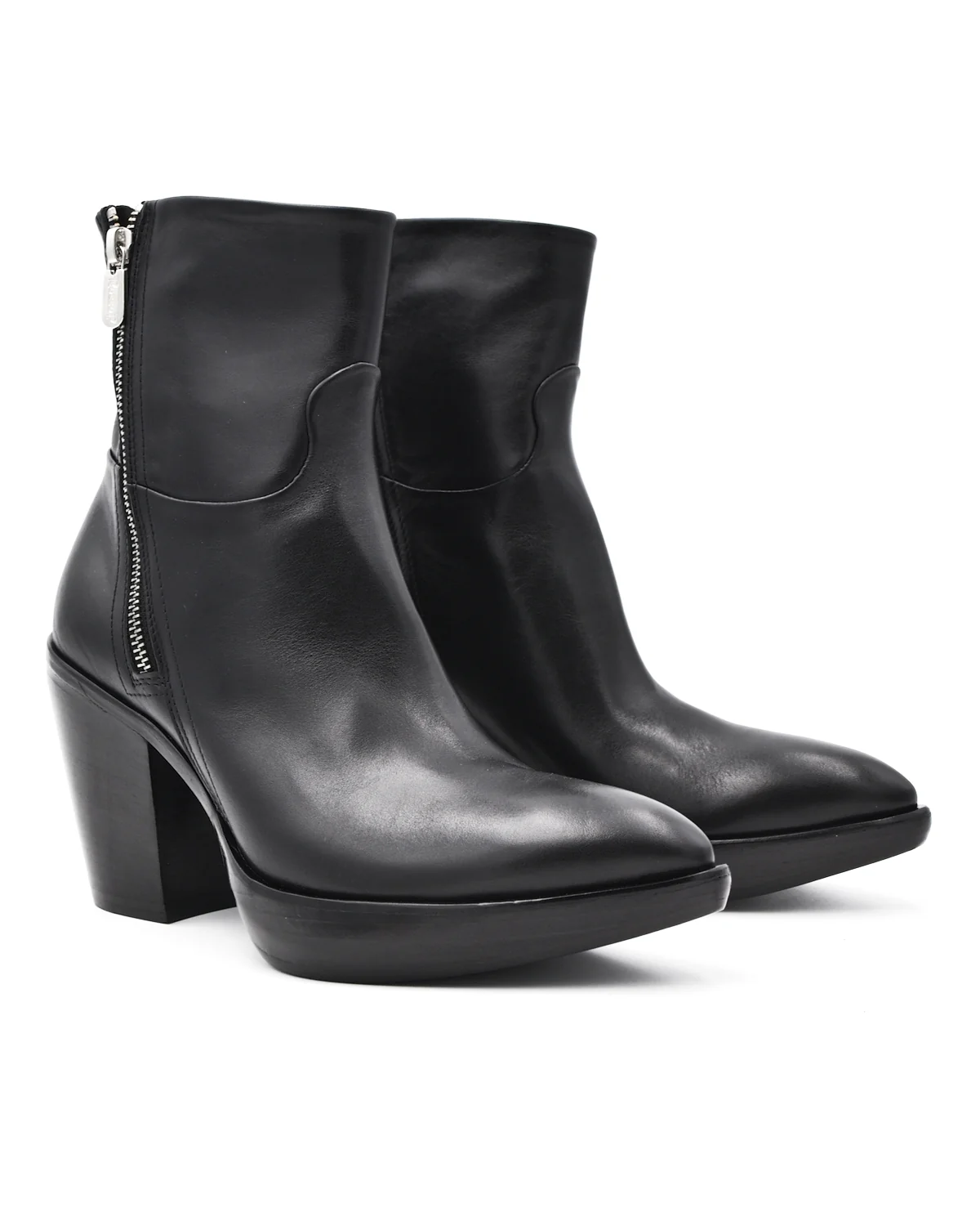 Denner Black Double Zip Mid Heel Boot