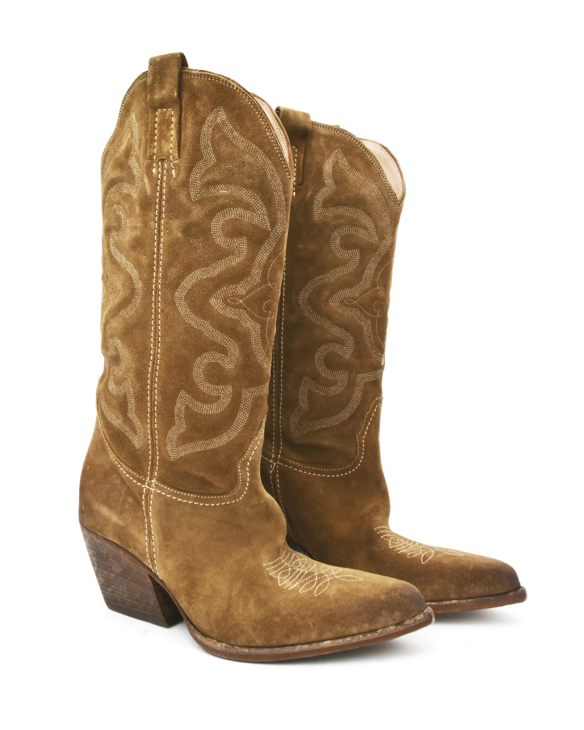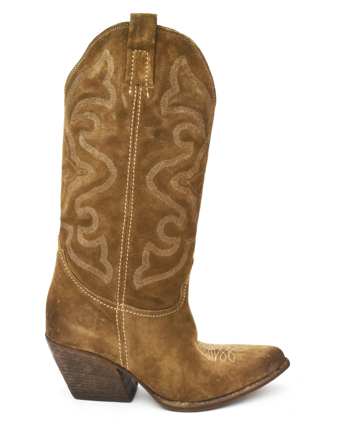 Elena Iachi Tall Brown Suede Contrast Stitched Western Boot