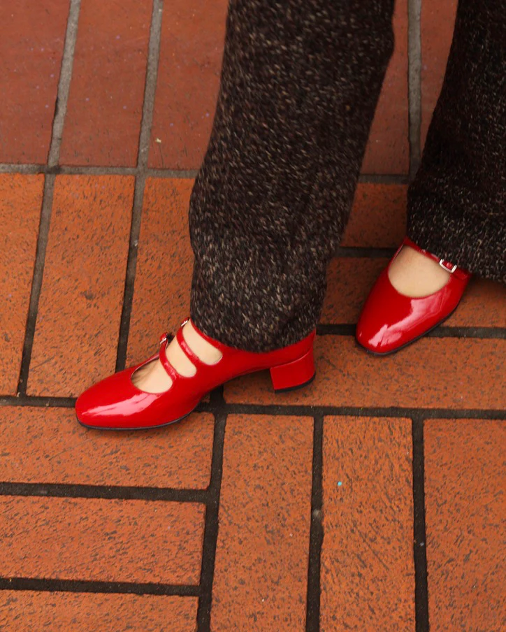 Carel Kina Red Three Strap Mary Jane