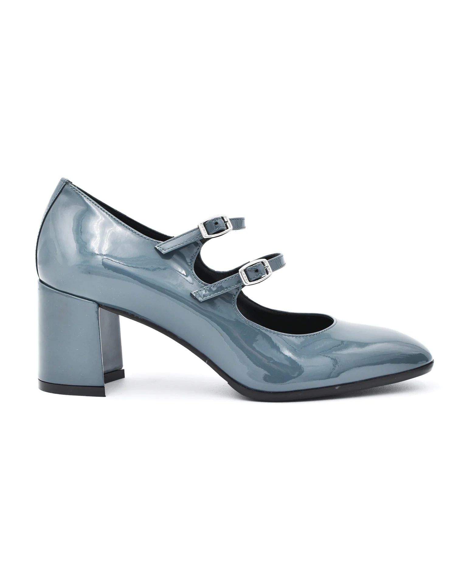 Carel Alice Blue Grey Patent Two Strap Mary Jane