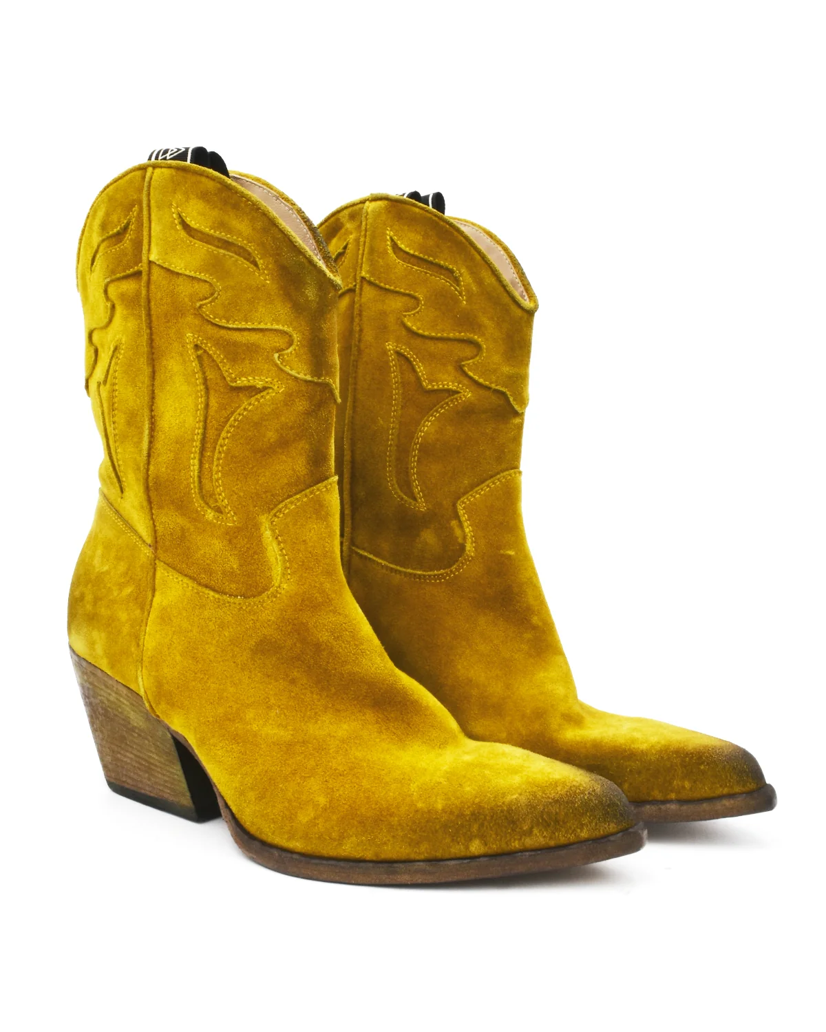 Elena Iachi Citron Yellow Dip-Dyed Suede Western Boot