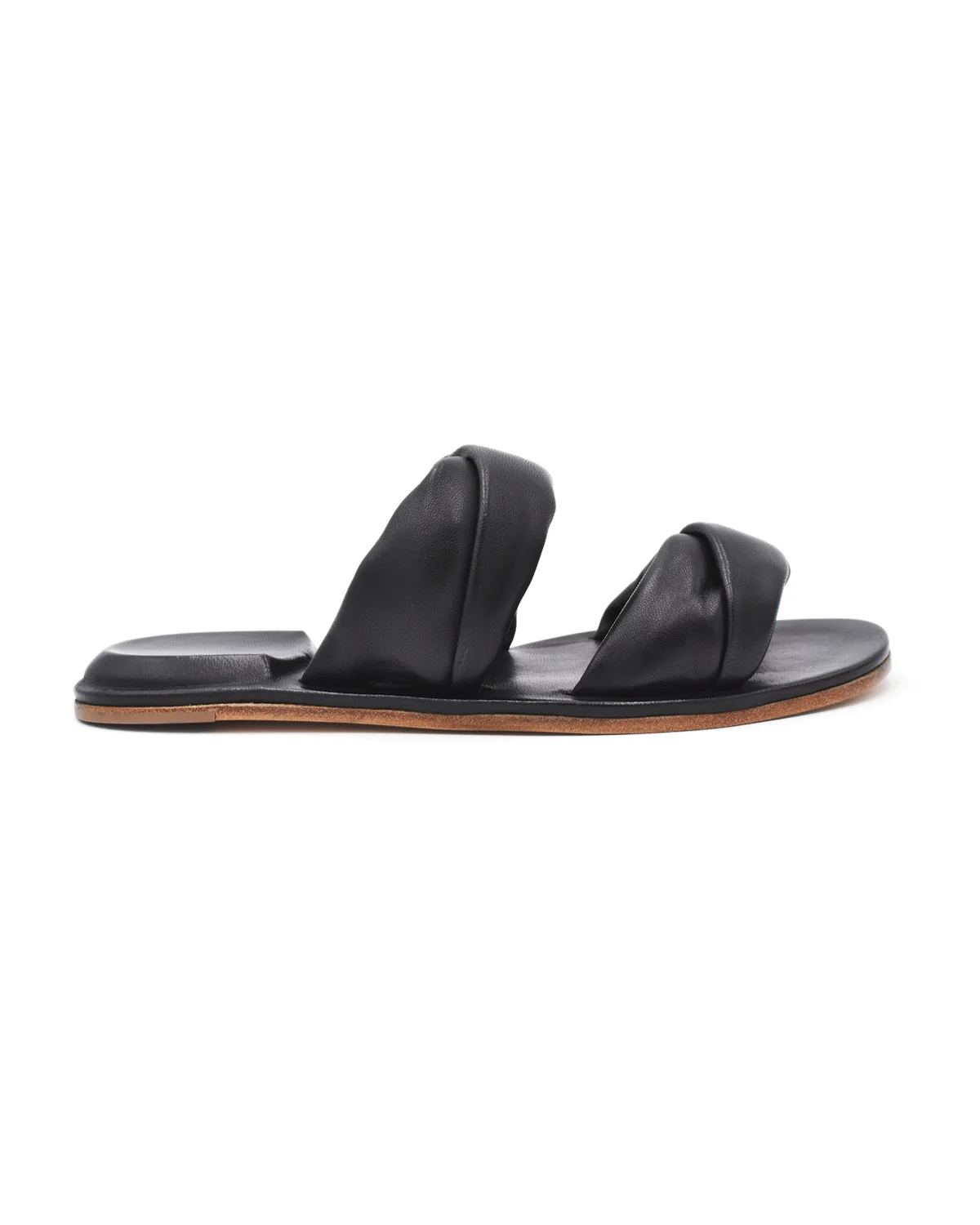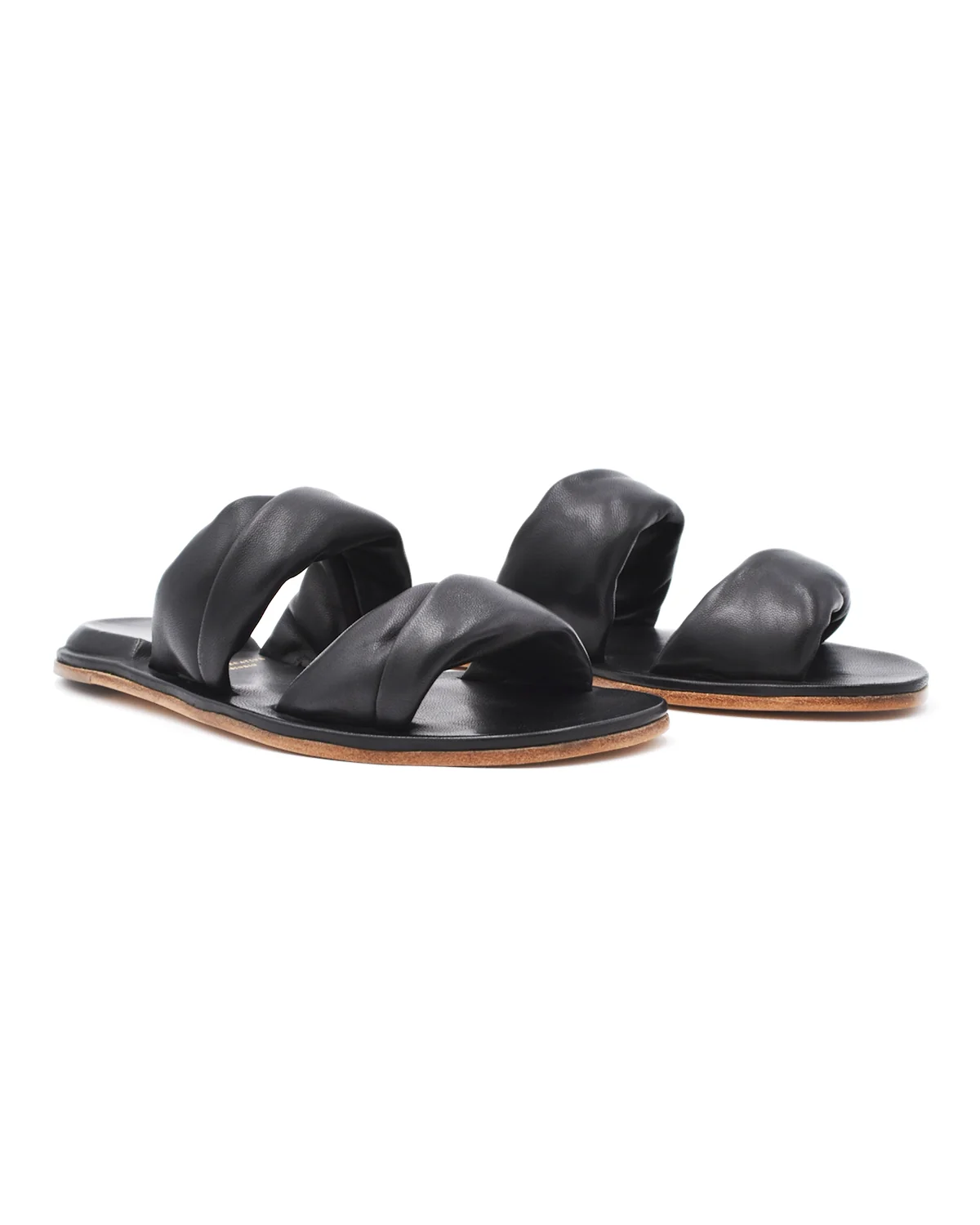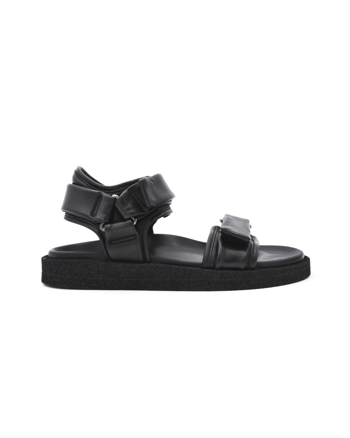 Creative Cybille Black Puff Strap Flat Sandal