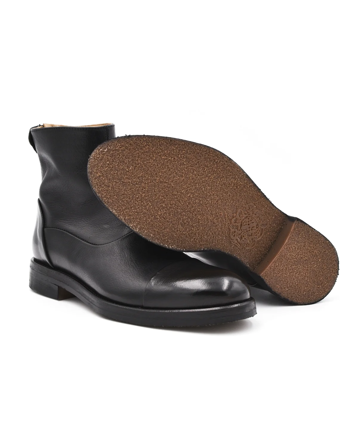 This cap-toe ankle boot by Alberto Fasciani is the perfect shoe to carry you from Fall to Winter for years to come. It comes in black calf leather with reddish undertones that pairs well with almost every outfit. The crepe sole has a nice grip and spring to it, something that daily walkers will adore. The Fasciani brand is most well-known for their competitive equestrian boots, exhibiting superior knowledge of fit and function in their fashion line as well. This style is no exception. Handmade in Italy. Fits true to size.