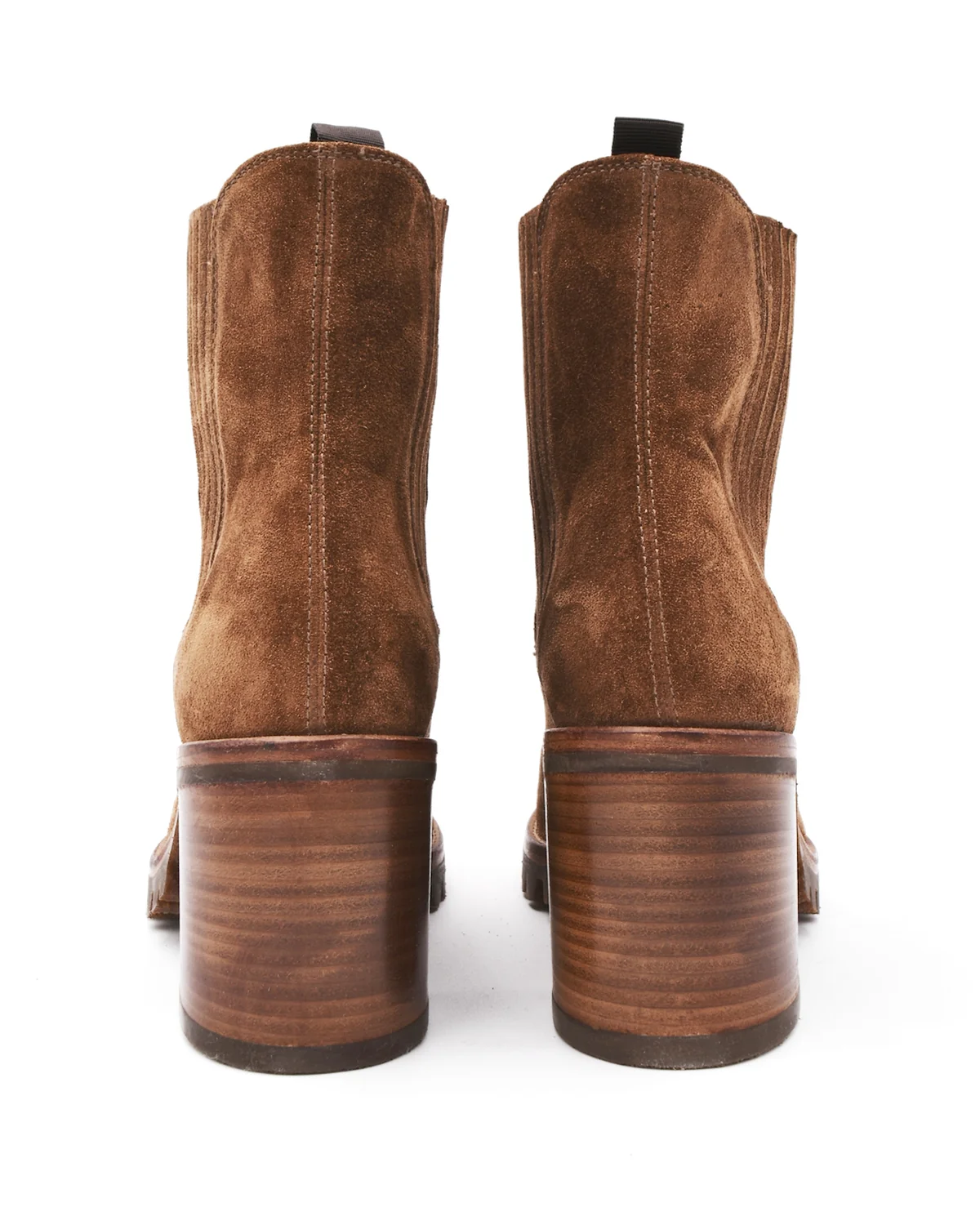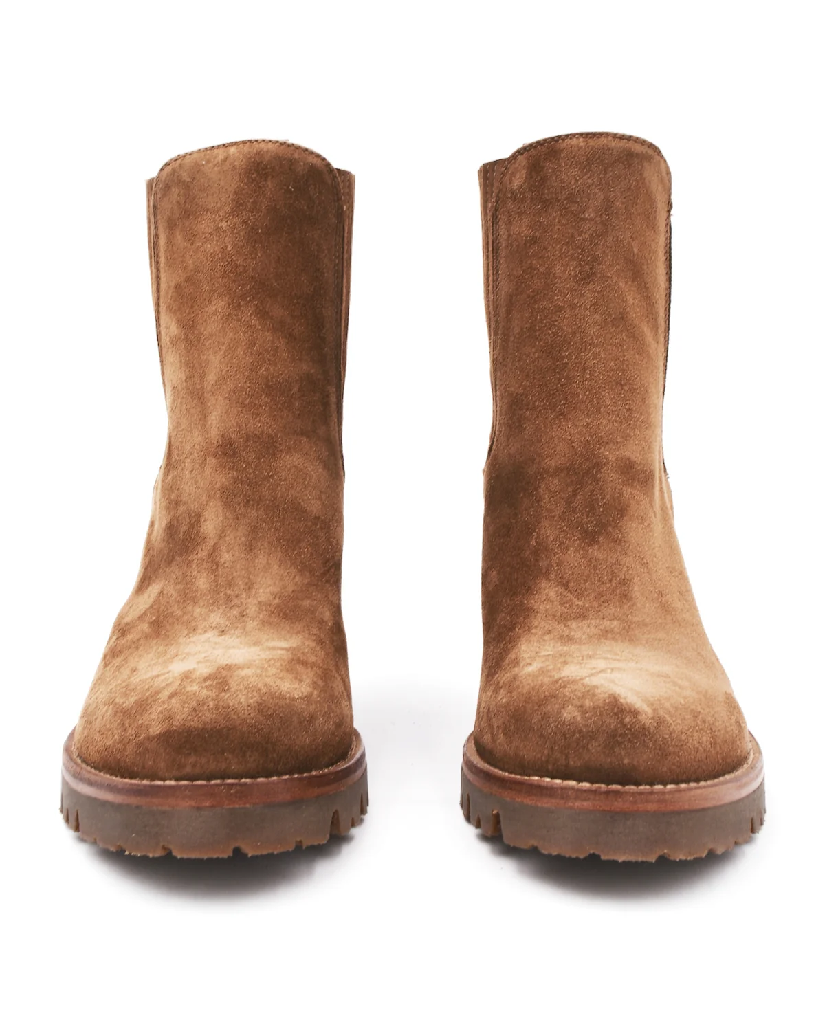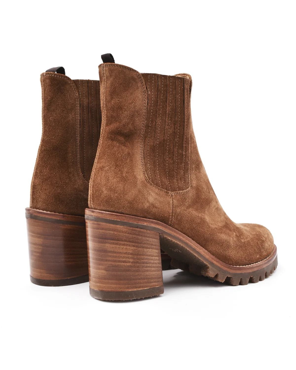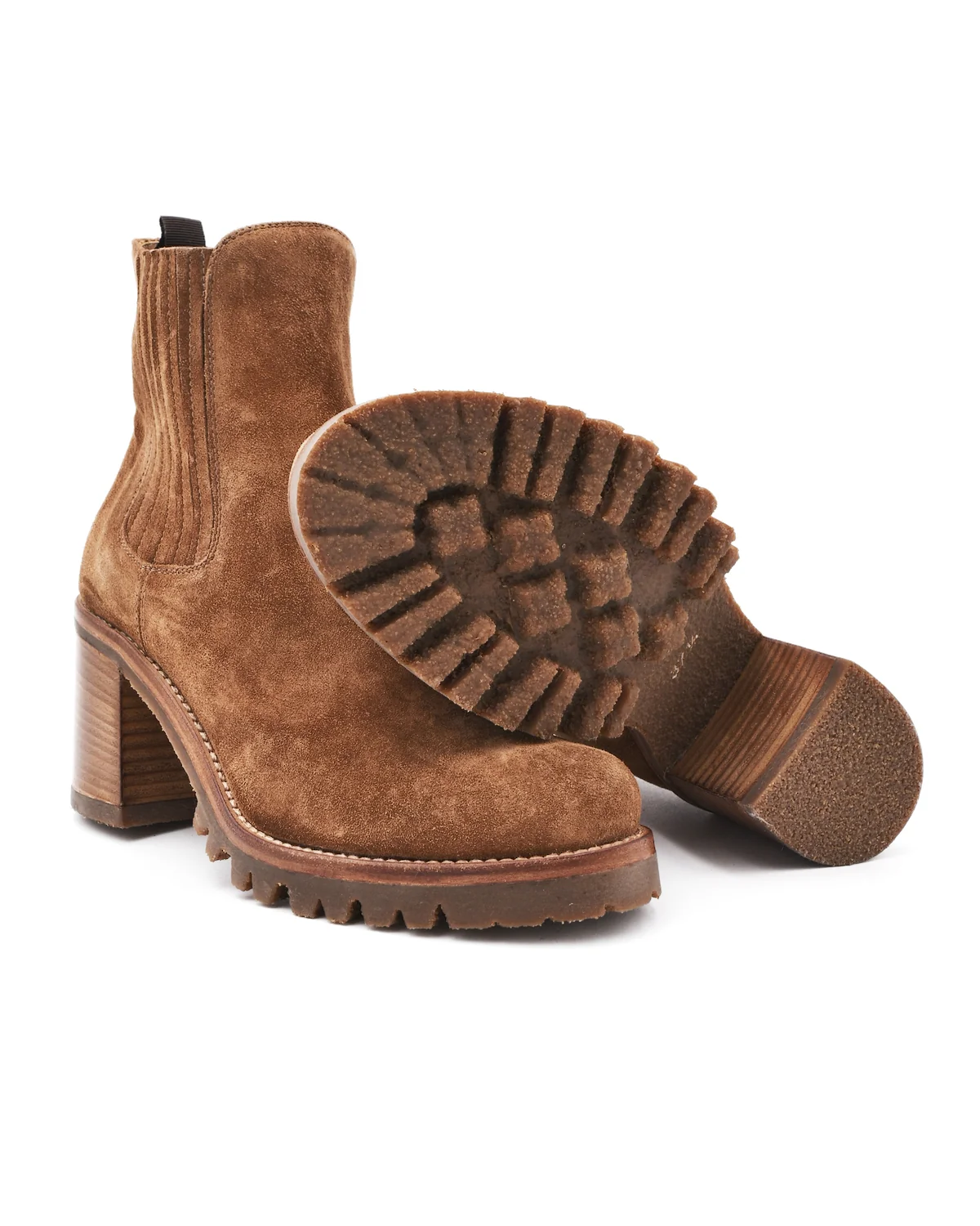 This suede heeled boot by Alberto Fasciani is a classic style with a little attitude. With a natural rubber lug sole, the 2.75 inch stacked leather heels are comfortable enough for long walks in the city or a long day at work. The ankle opening has elastic for easy pulling on and the chestnut colored suede goes great with everything, from blue jeans to dresses. True to the brand's roots as a competitive equestrian boot makers, their fashion line exhibits superb attention to detail and fit. This boot is no exception. Fits true to size. Handmade in Italy.