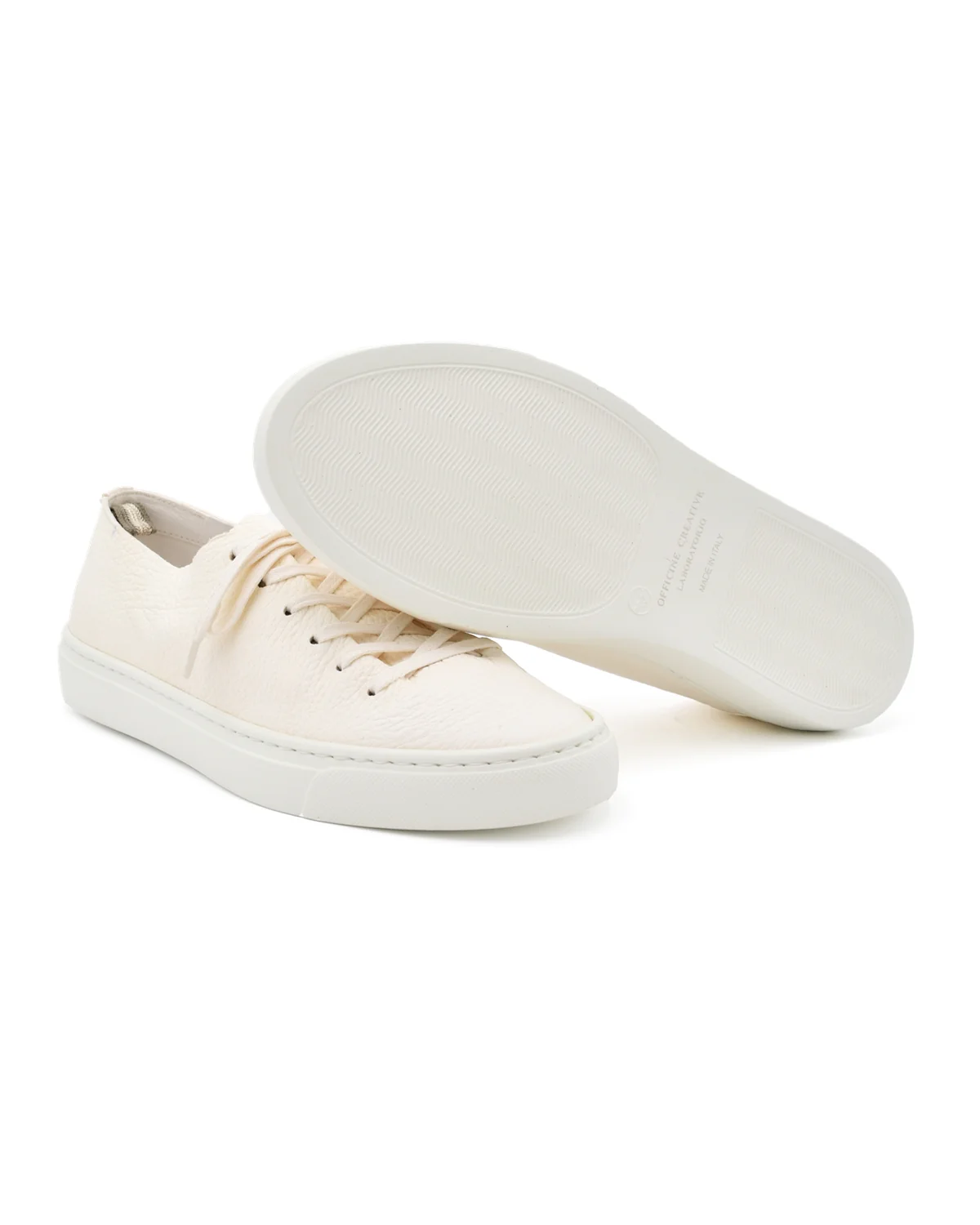 A masterpiece of lightness and sporty design. Expertly handcrafted in Italy from a single piece of pebble off white calfskin, the Leggera from Officine Creative features an unlined leather upper and a durable, lightweight rubber sole. An aesthetically pleasing, extremely practical and comfortable shoe, suitable for all-day wear. Runs true to size. Made in Italy.