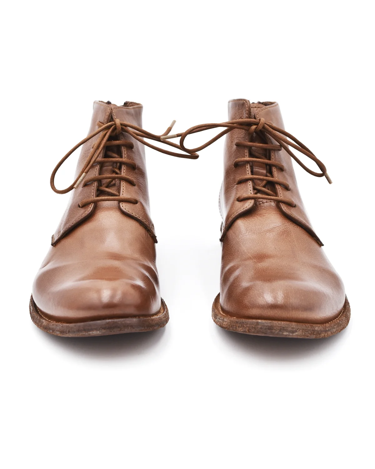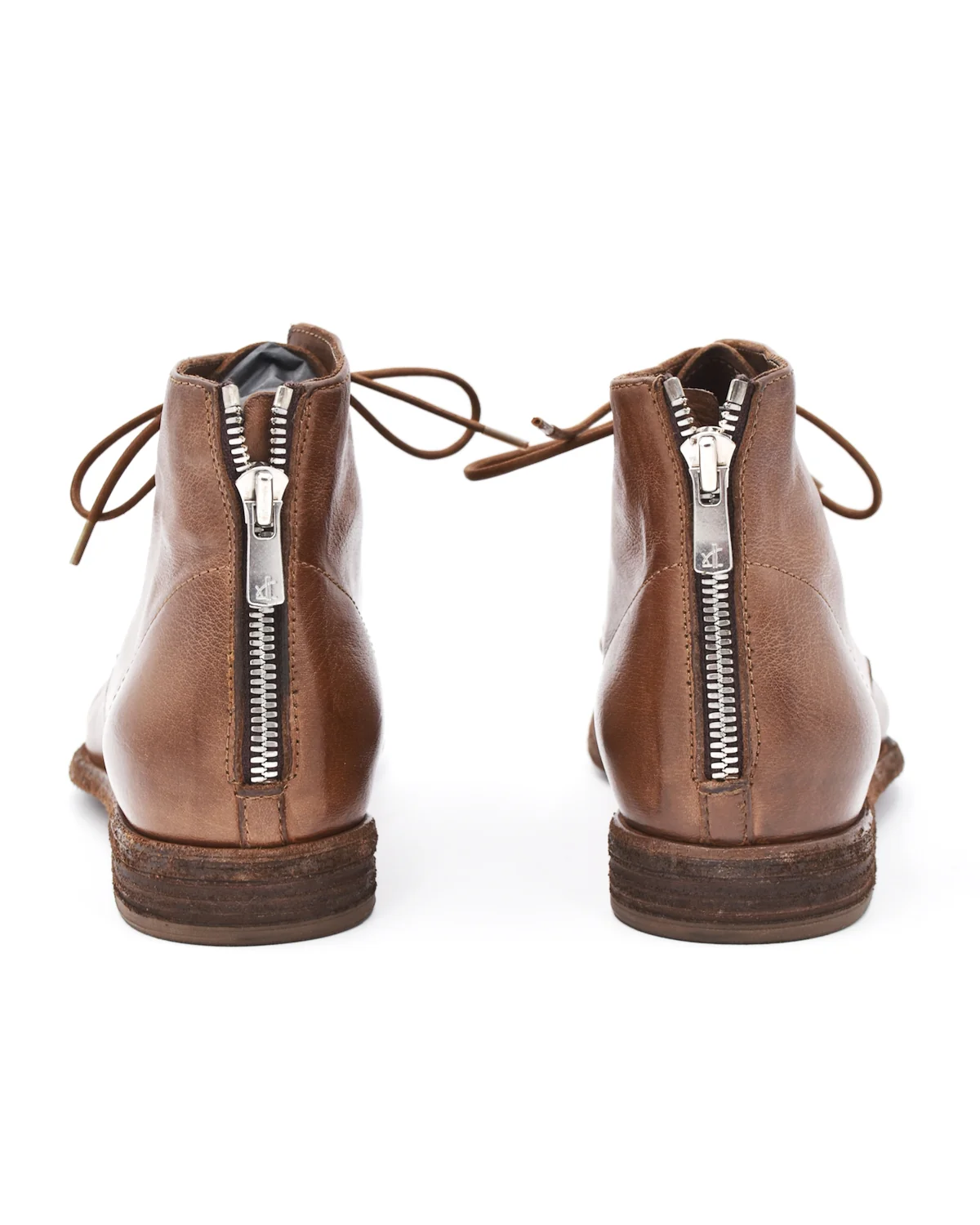 With their timeless silhouette, the iconic handcrafted Lexikon ankle boots are perfect to fit on many occasions. They are made from fine leather in a light tan tone and have a rounded almond toe. Details include slim waxed laces silver-tone metal back zip fastening and a durable leather sole with a low stacked heel and tread rubber inserts. Made in Italy.