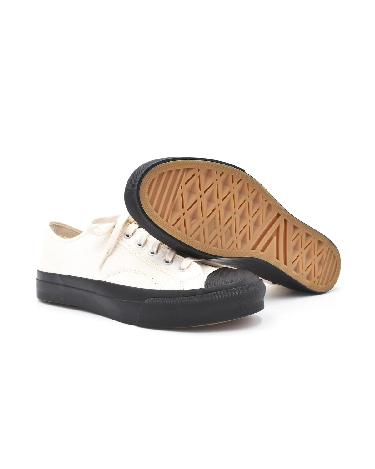 The Low Trainer will look familiar to many, being based off the classic Chuck Taylor. The Moonstar version however stands above as far as quality of materials and construction. The upper is woven from a heavy natural canvas with cotton mesh trim. The sole - like all Moonstar footwear - is a full vulcanized construction, making it far more durable.