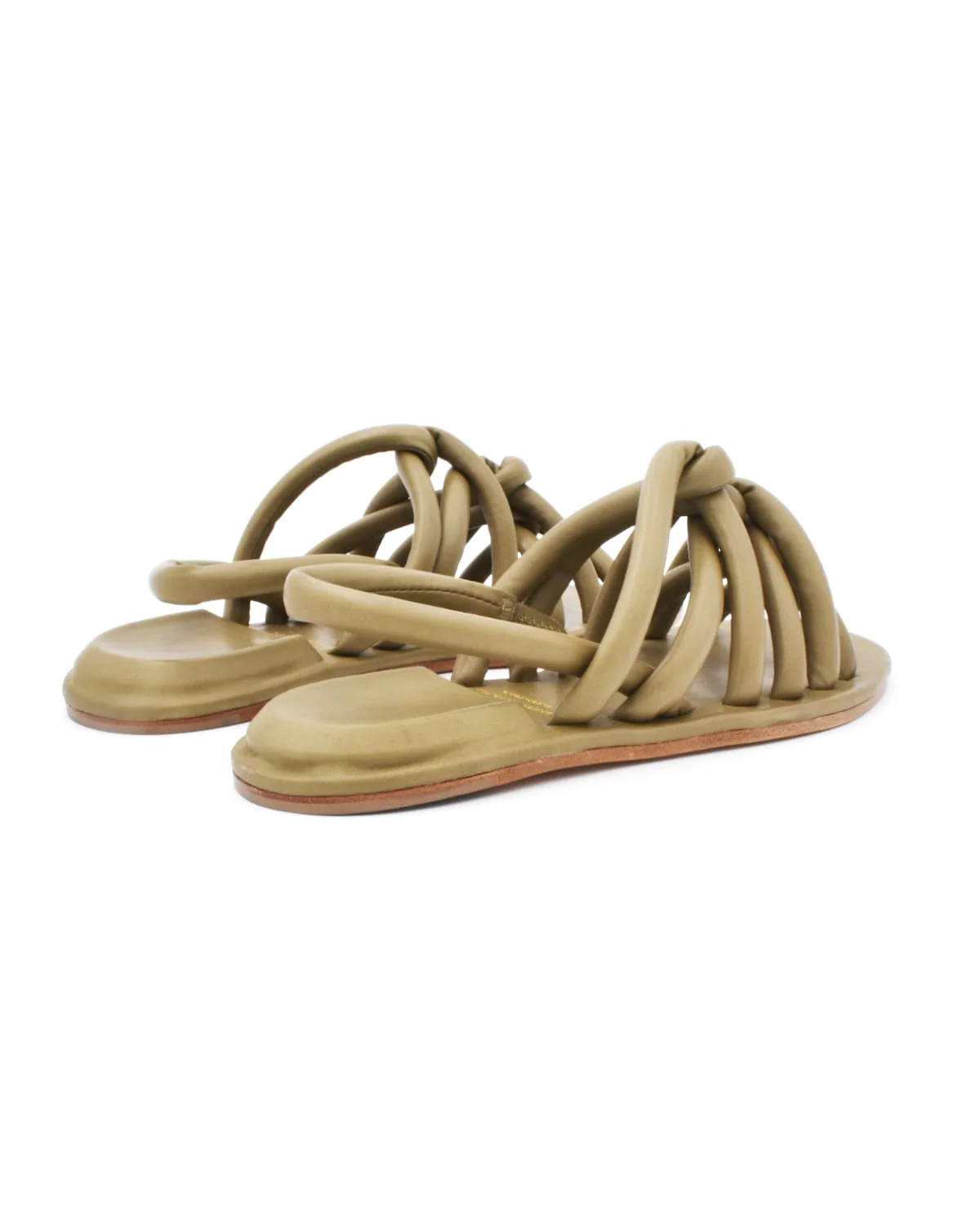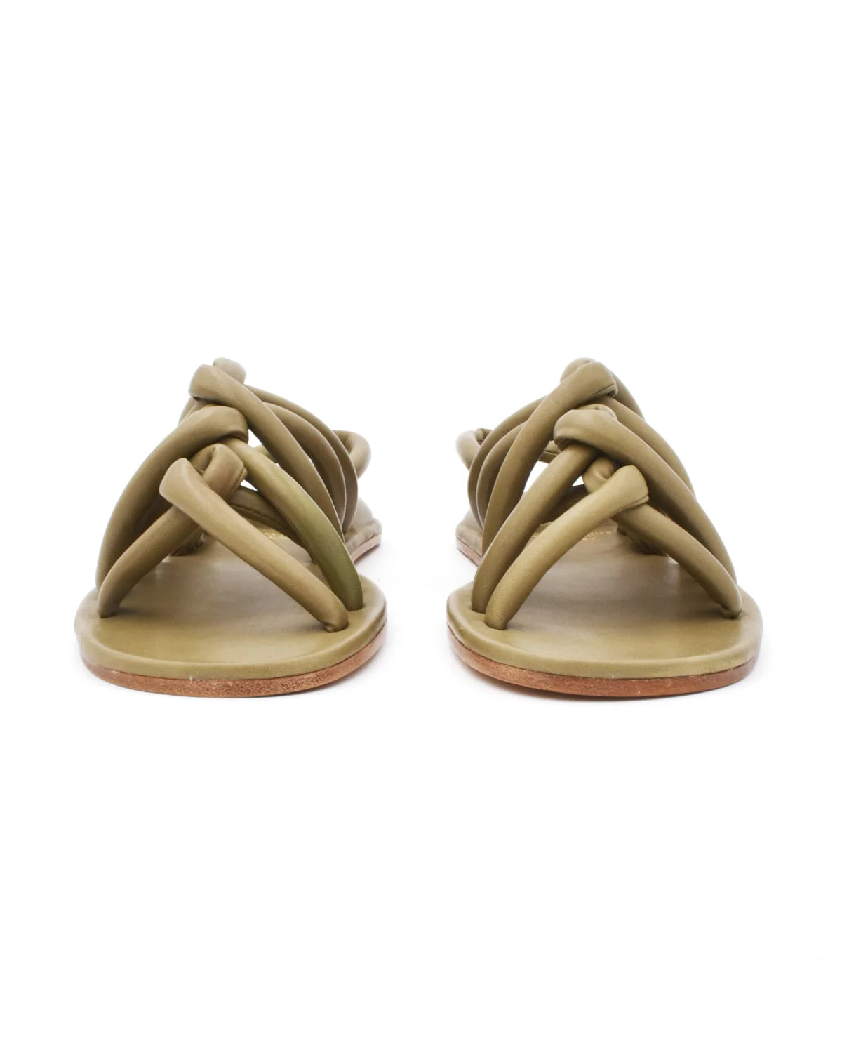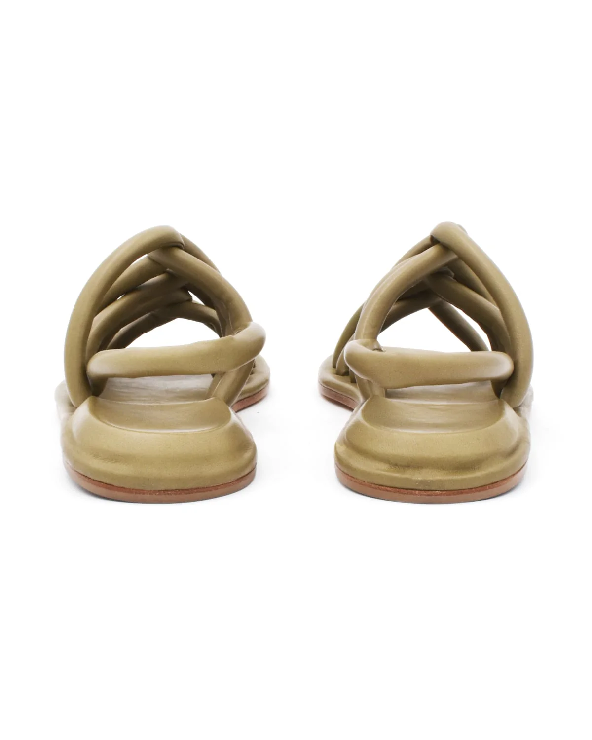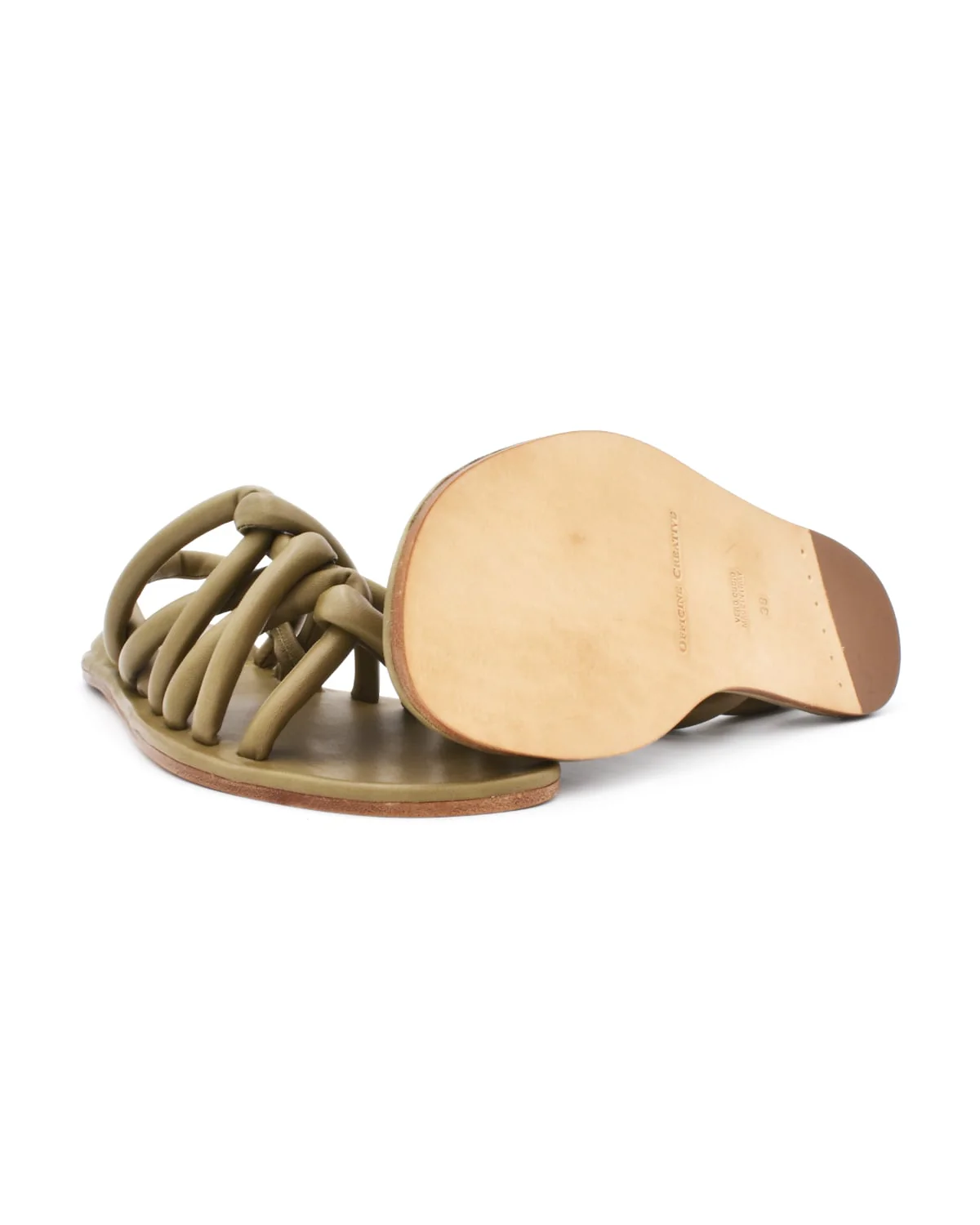 The Cybille slide from Officine Creative feels like an updated, modern take on a low cut gladiator sandal. The straps are crafted from a soft calf leather that has been rolled into a thick tube and padded. The overlapping weave of the straps creates a soft yet stable fit around the foot. The back heel strap is elasticated for a comfortable fit in the heel. Made in Italy.