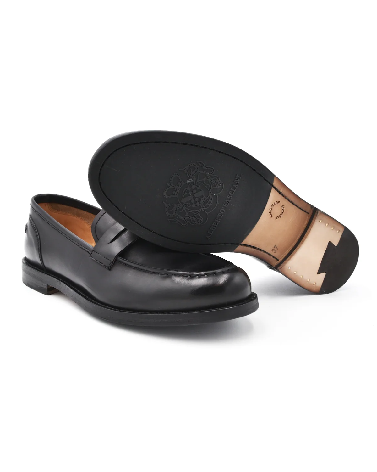 The 'Zoe' from Alberto Fasciani has the traditional instep strap, moc stitch across the top and slightly boxier toe make these a classic prep school penny loafer. The leather stitched sole has the added benefit of being covered with a rubber top sole. True to the brand's origin as manufacturers of competitive equestrian boots, these are made by hand with the closest attention to fit, elegance, and comfort. Made in Italy. Fits half size small.