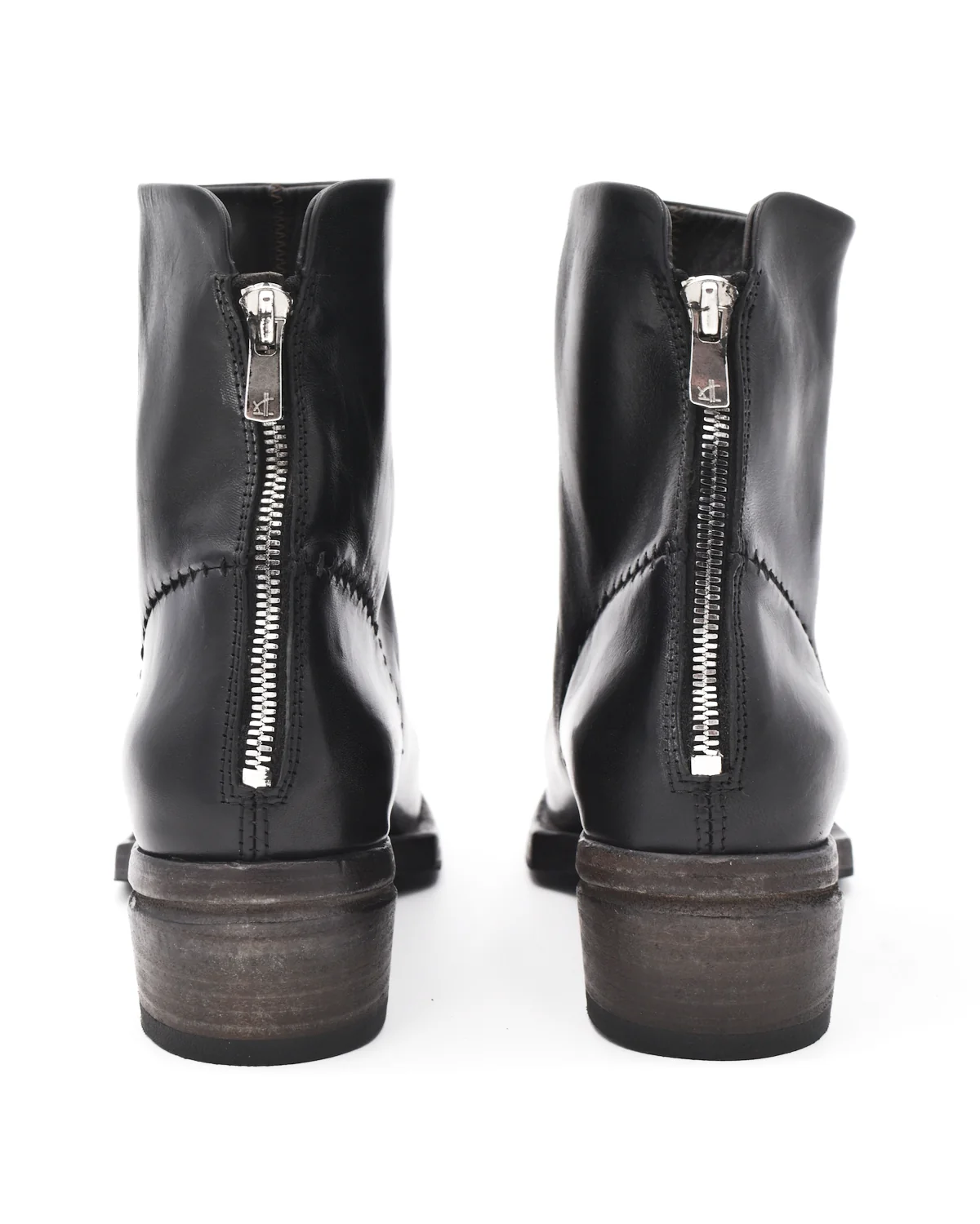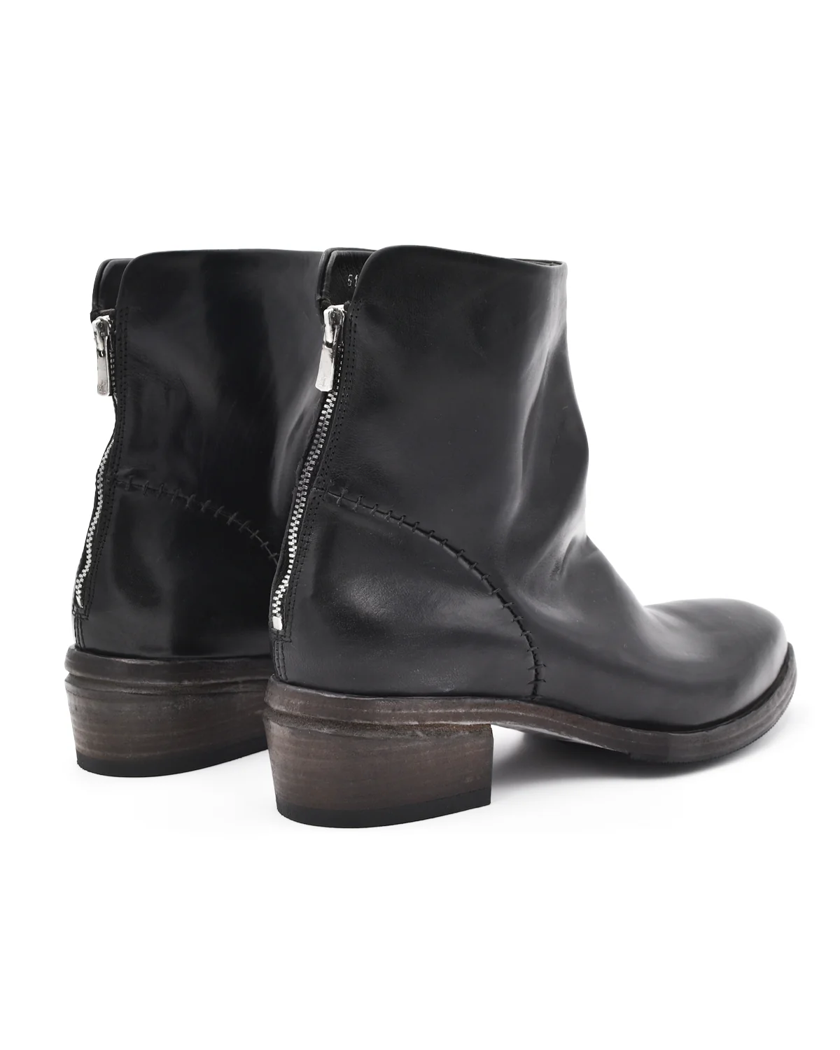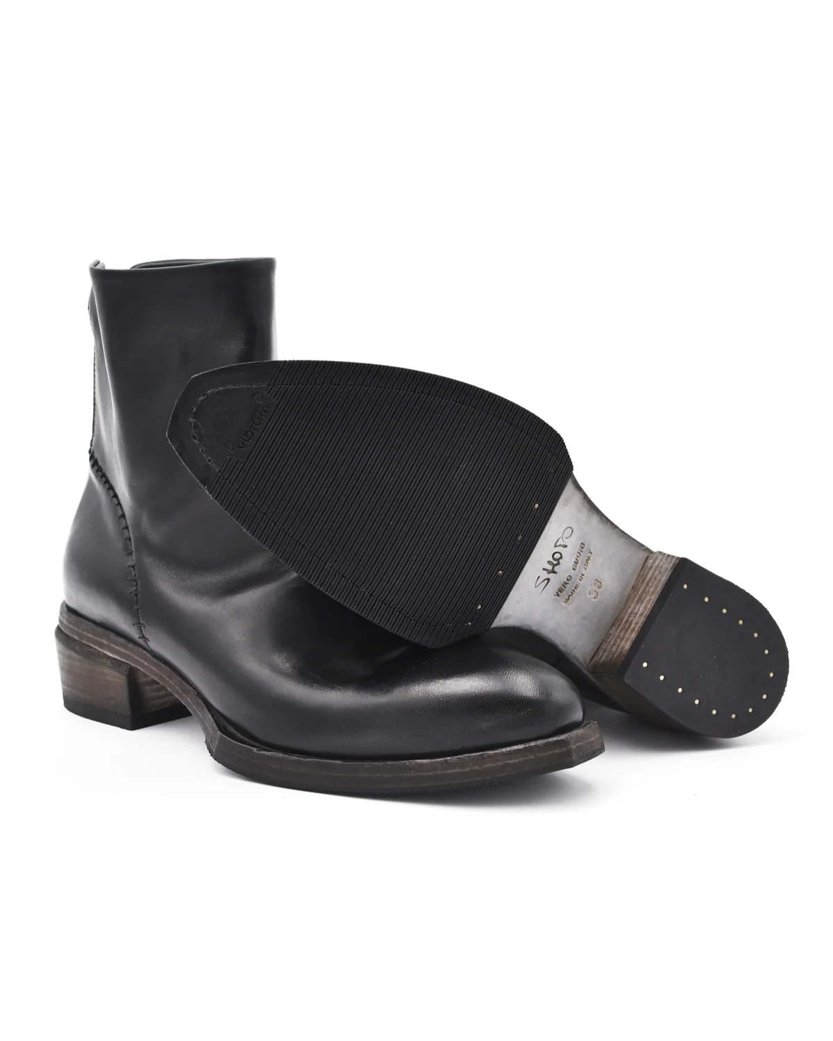 The black ankle boot by Shoto is a classic style with the impressive detail work that the brand is known for. The spaced hand-stitching on the heel cap, the edged sole details, and the soft point of the toe add a level of sophistication. Features include a back zipper, a rubber heel, and a ridged sole covering for all-weather functionality.