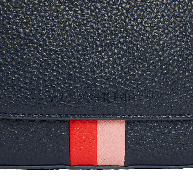 The Elms and King Brooklyn Crossbody is a compact handbag, with a magnetic closure top flap for easy access. The bag features double bonded vegan leather material, with 14 karat light gold plated hardware. The top flap opens to reveal an interior open top slip pocket, and a light-coloured vegan leather lining. The Brooklyn Crossbody has a cotton webbing strap, adjustable to 140cm.