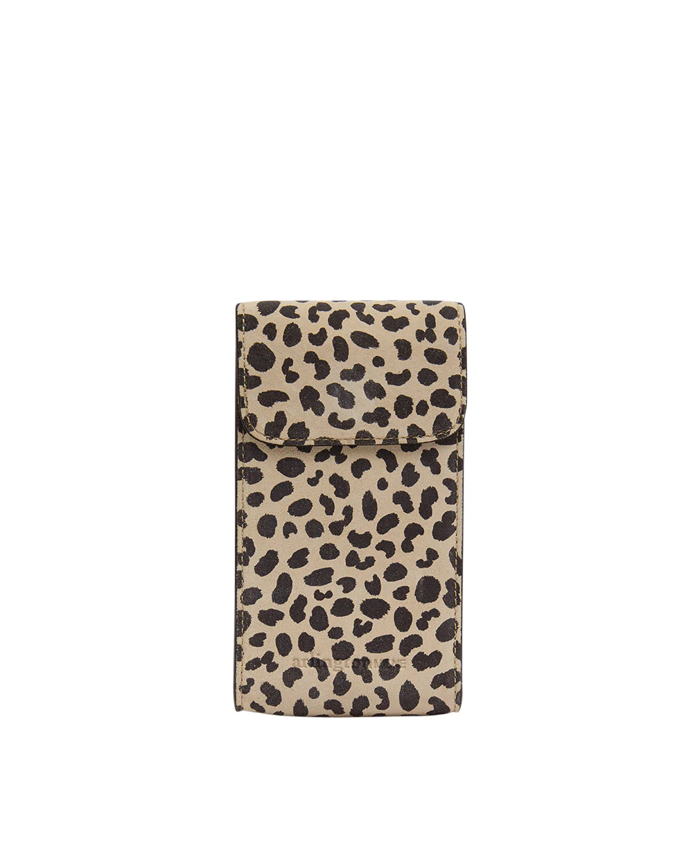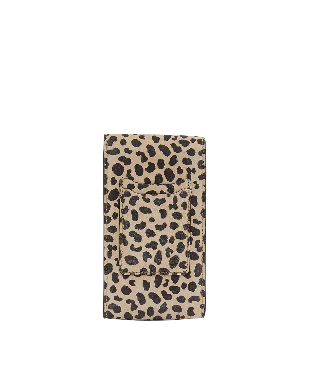 The Arlington Milne Celeste Phone Bag is crafted from premium suede. The bag features light gold hardware, a leather crossbody strap and short chain wrist strap. The bonded leather top flap is secured with a hidden mag closure and opens to reveal light toned leather lining. The Celeste features two rear mounted card slots.
