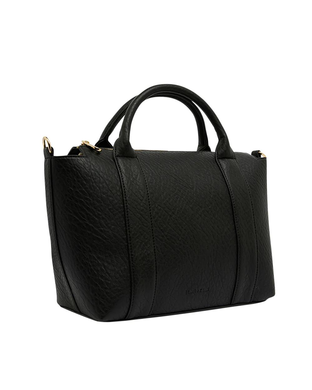 The Elms + King Messina Tote is made from premium recycled PU and features classic structured body construction and top grip handles. The Messina can be carried using the handles or worn using the removable crossbody strap. The bag features a top zipper, which opens to reveal an ample centre compartment with a PU trimmed zipper pocket, and PU trimmed open top slip pocket.