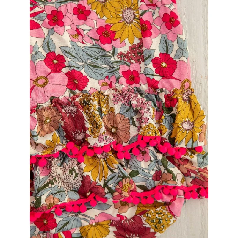 The Ruffle Tote Bag is so fun with its fun print, cute little pom-poms and layered ruffle details. It’s generously sized so you can fit everything you need inside and makes the perfect beach bag or everyday tote!