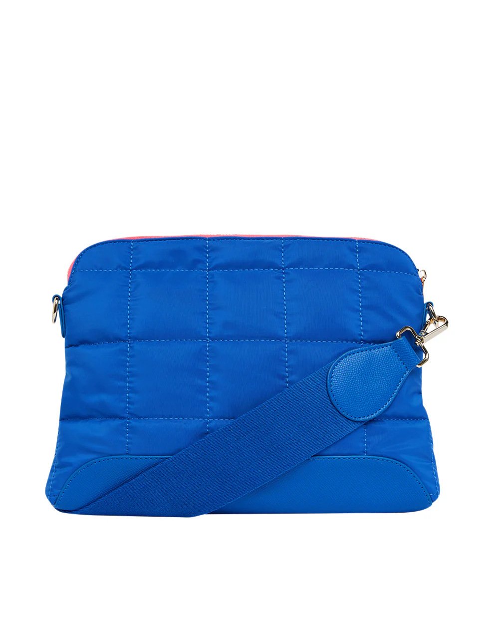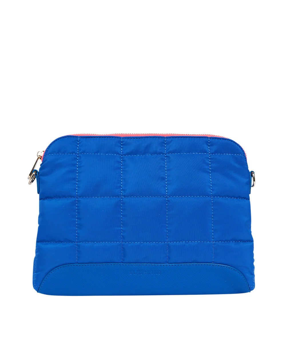 The Elms and King Soho Crossbody has a top zipper and features two strap options, both adjustable to 140cm. The crossbody bag opens to reveal a bright neon pop interior, and small zippered accessories pocket. Made from premium quilted nylon with 14-karat light gold-plated hardware the Soho Crossbody is the perfect bag for hands free style.