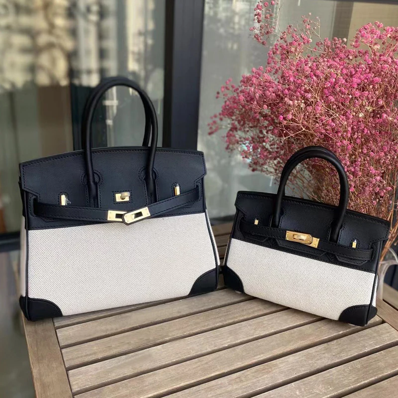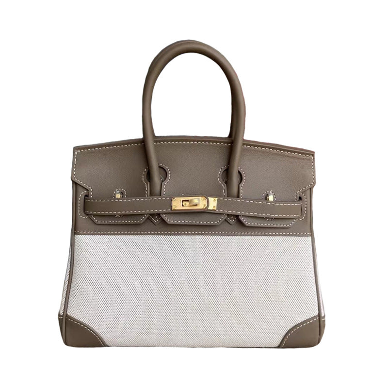 Genuine Leather Canvas Birkin Bag